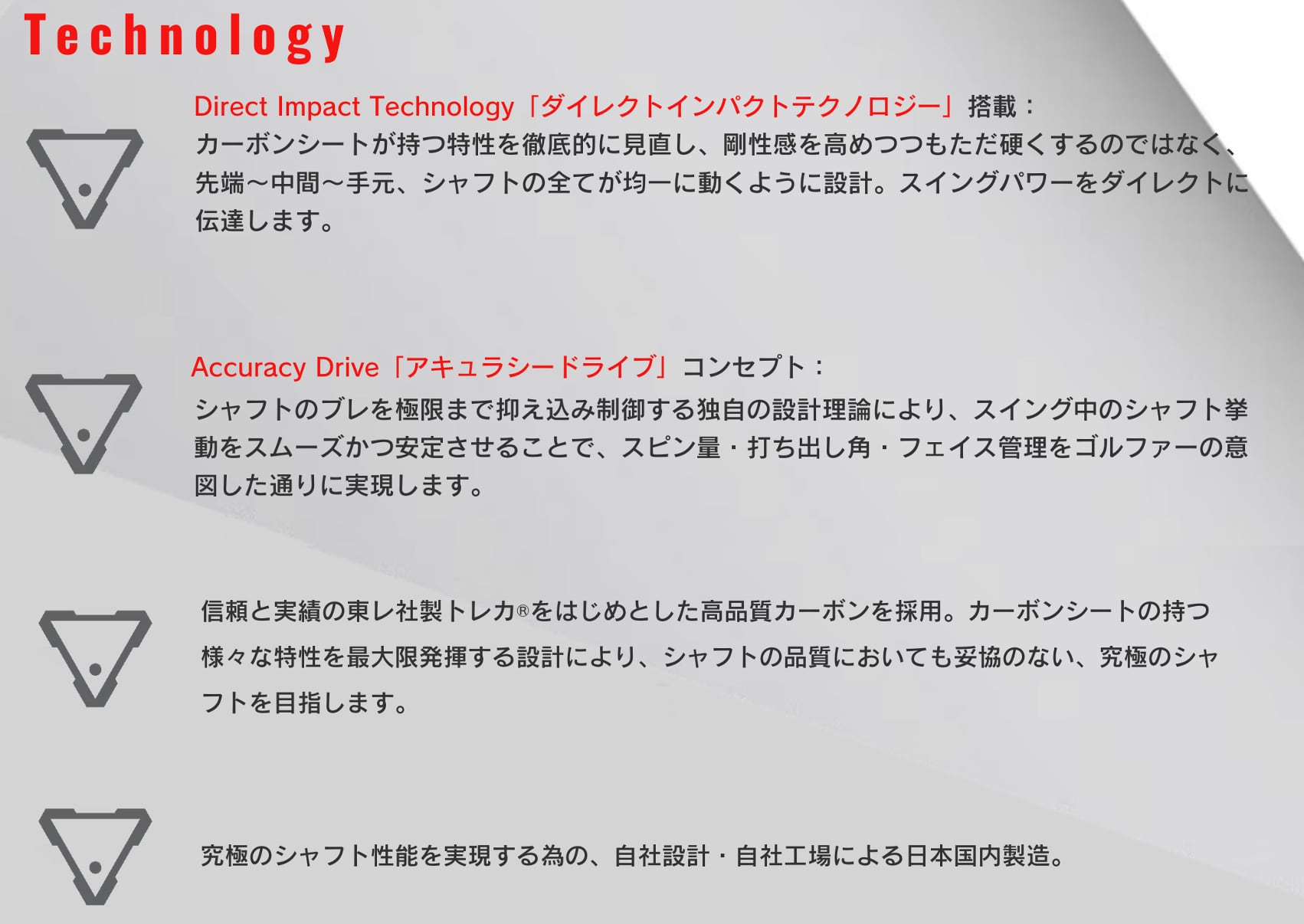 「ブレなく狙って飛ばしたい」、そんなわがままなゴルファーの気持ちを実現可能なシャフトです。